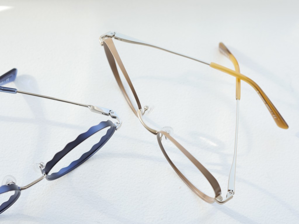 90s style – metallinnfatninger ses i rektangulære og ovale former.